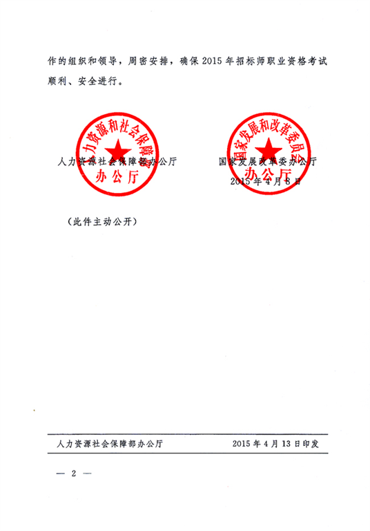 关于转发《人力资源社会保障部办公厅国家发展改革委办公厅<关于2015年招标师职业资格考试日期的通知>的通知