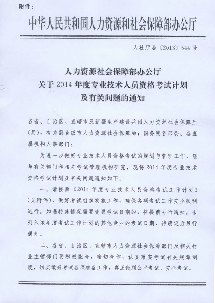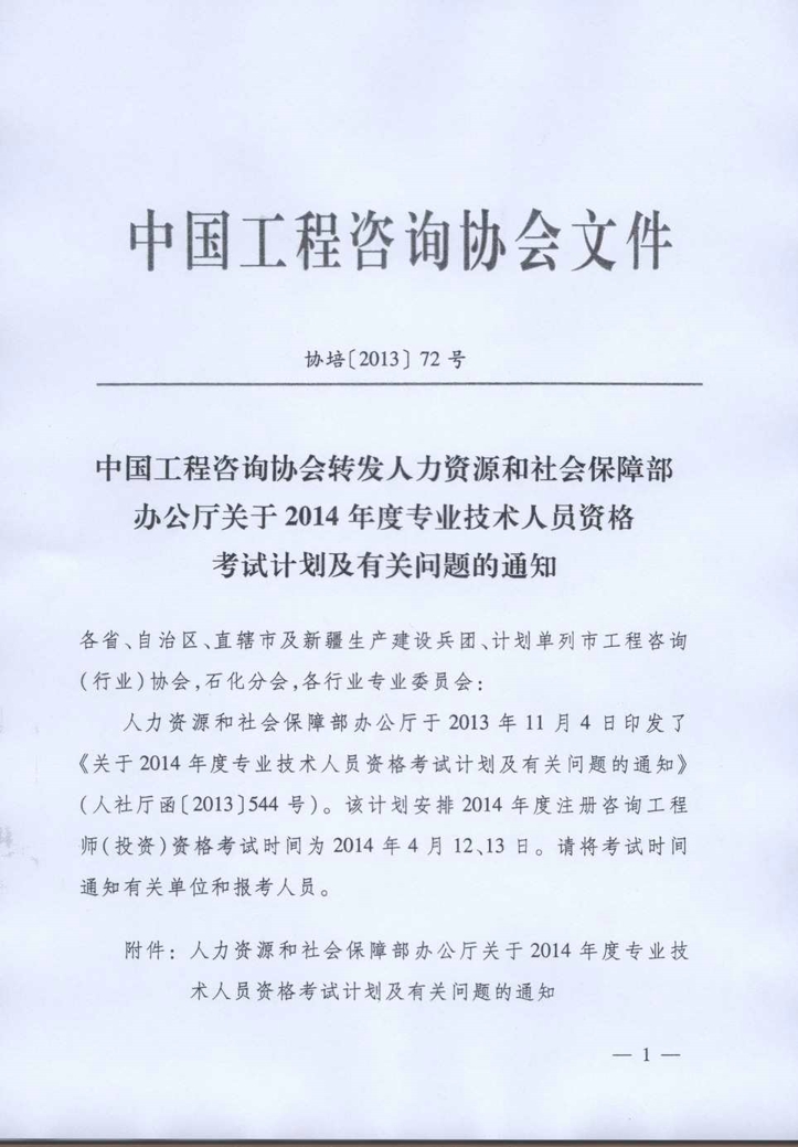 中国工程咨询协会转发人力资源和社会保障部办公厅关于2014年度专业技术人员资格考试计划及有关问题的通知