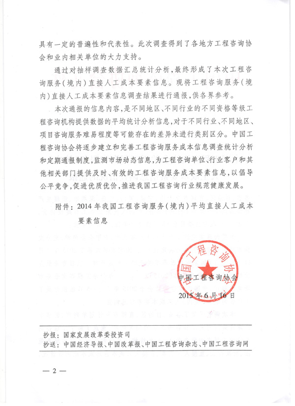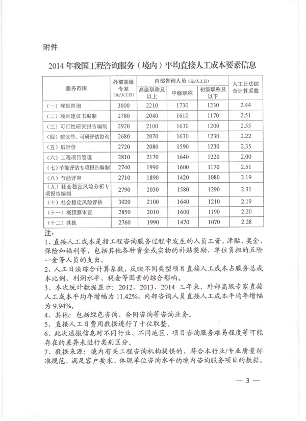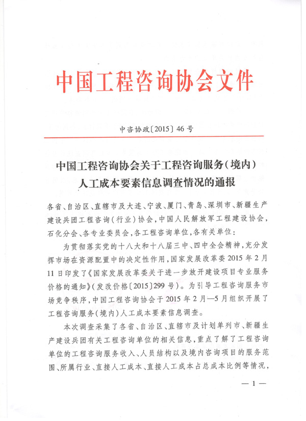 中国工程咨询协会关于工程咨询服务(境内)人工成本要素信息调查情况的通报