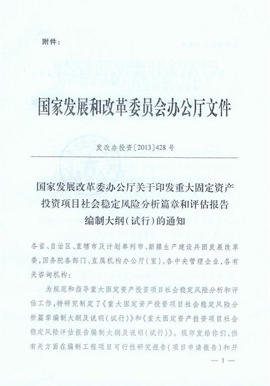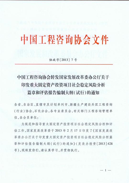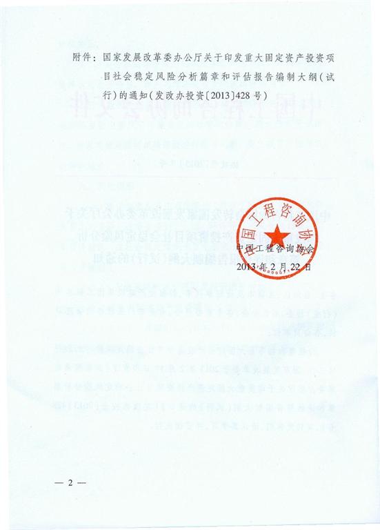 中国工程咨询协会转发国家发展改革委办公厅关于印发重大固定资产投资项目社会稳定风险分析篇章和评估报告编制大纲(试行)的通知