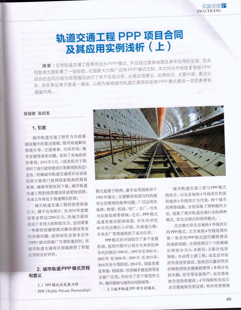 轨道交通工程PPP项目合同及其应用实例浅析(上)